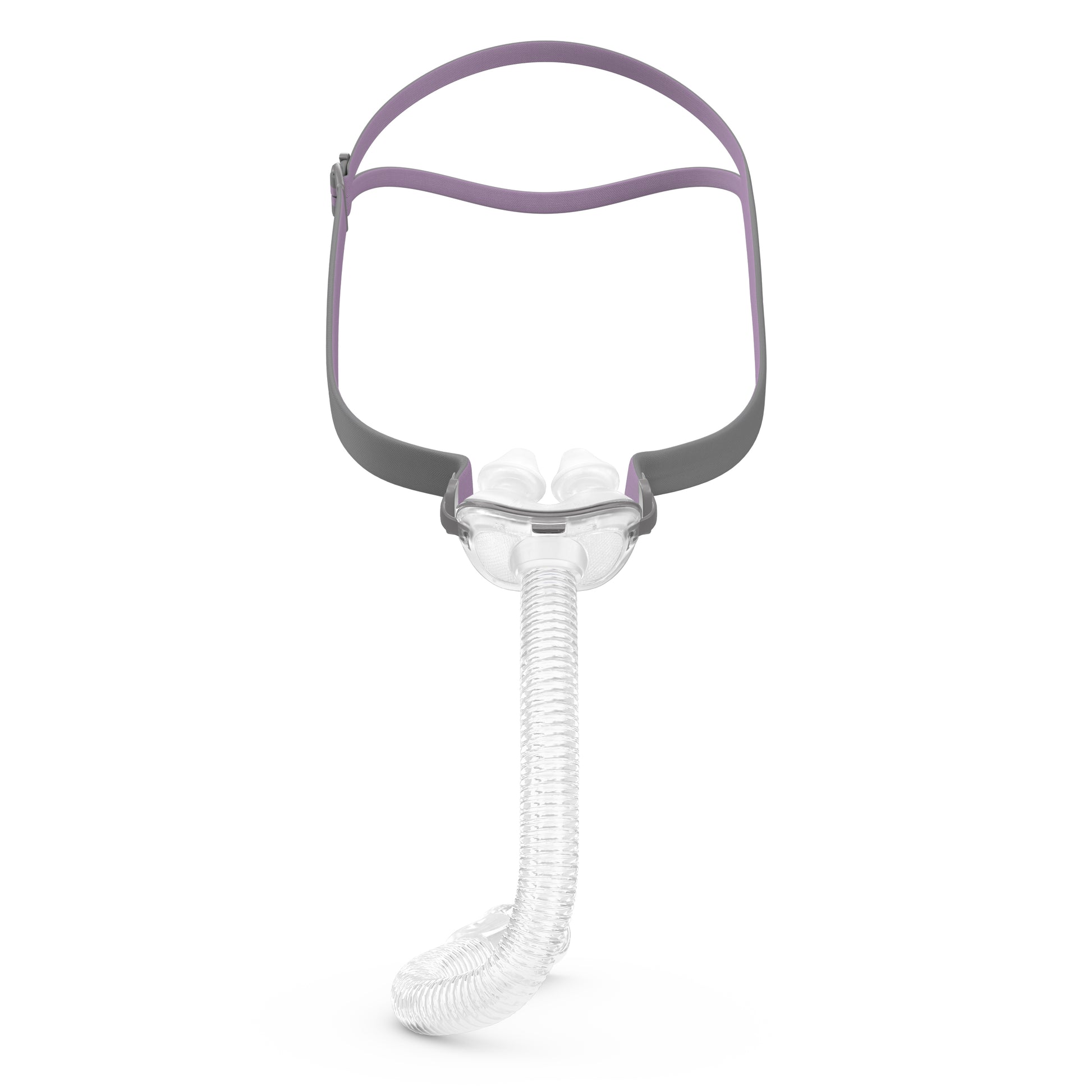 Includes the pink headgear, frame system with short tube and nasal pillows cushion for the ResMed AirFitª P10 For Her nasal pillows CPAP mask.